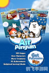 《飞翔的企鹅》是一款极具创意的休闲游戏,玩家将扮演一只渴望飞翔的企鹅,挑战各种关卡,体验不一样的冒险旅程,游戏以其独特的设定和趣味性吸引了大量玩家。