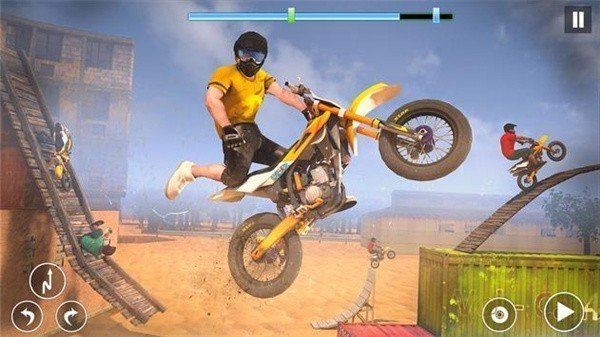 4、支持多人在线竞技,玩家可以与来自世界各地的对手一较高下,争夺特技摩托车手的荣誉。