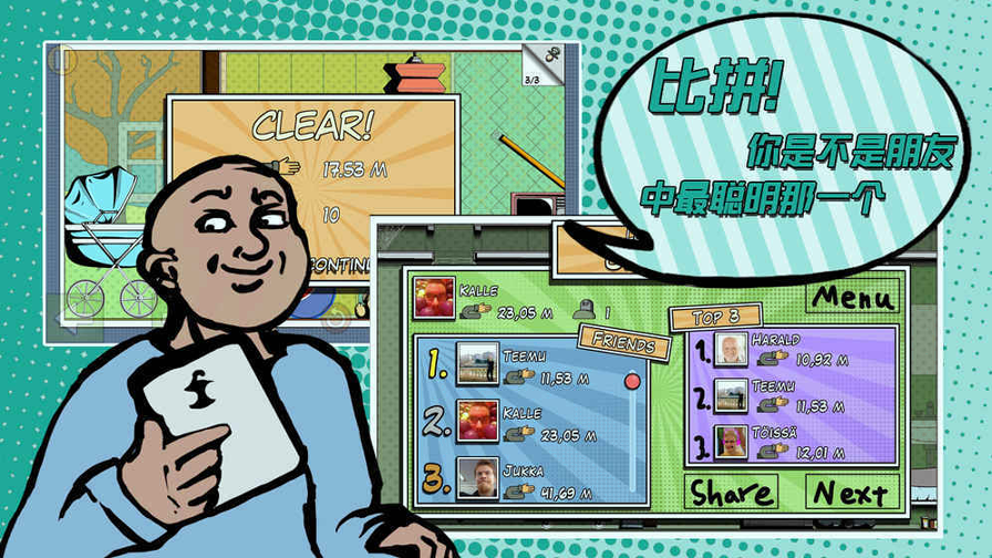 1、Grab the Bottle采用了真实的物理引擎,使得每一次抓取瓶子的过程都充满变数,挑战性极高。