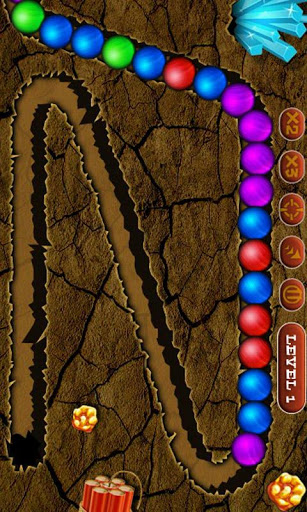 1、玩家通过触摸屏幕,控制矿车发射珠子,目标是与轨道上的珠子形成连续三个或以上的相同颜色组合,从而消除得分。