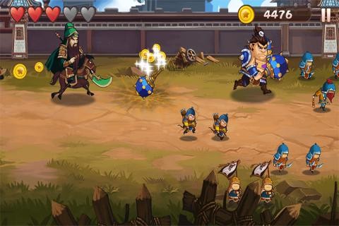 1、玩家需要操控三国英雄在游戏中奔跑,尽可能跑得更远,同时收集金币和道具。