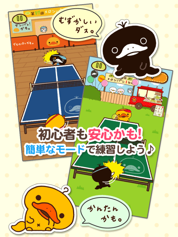 1、玩家需要操控鸭嘴兽角色,使用桌球拍击打小球,通过反弹将球打入对方的半场。