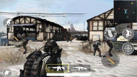 2、在游戏中,玩家需要利用虚拟摇杆控制角色移动,通过触摸屏幕进行射击、换弹和切换武器等操作。