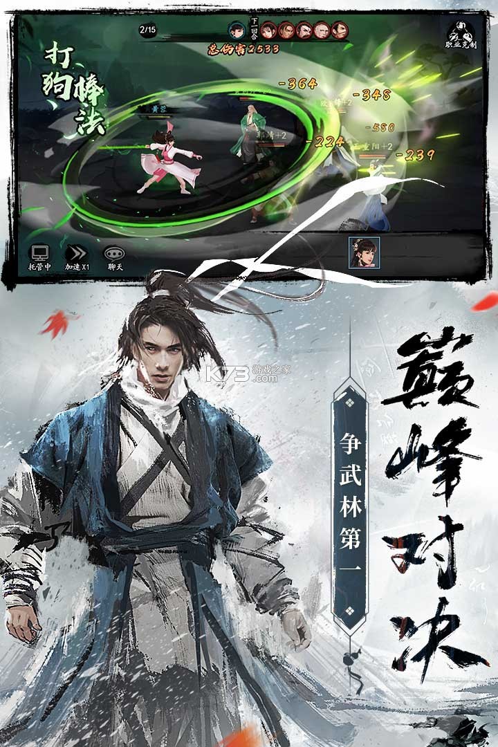 1、玩家可以通过招募英雄、培养角色等方式,组建起一支强大的武侠团队,挑战各种难度的副本和关卡。