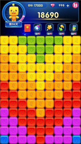 3、游戏提供多种助力道具,如炸弹、变色糖果等,帮助玩家解决难题。