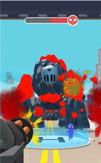 2、通过触摸屏幕进行瞄准和射击,击败怪兽后可以获得金币和经验值,用于升级武器和角色能力。