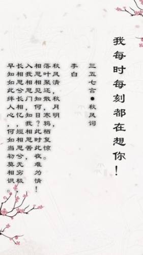 5、随着剧情的深入,玩家将逐渐揭开隐藏在诗词背后的秘密,体验到一段段感人至深的爱情故事。