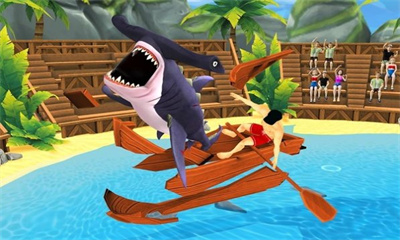 1、玩家通过触摸屏幕来控制鲨鱼的移动和跳跃,完成各种高难度动作。