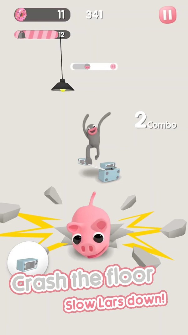 1、简单易懂的操作方式,玩家只需通过触摸屏幕即可控制猪猪侠进行跳跃、滑行等动作。