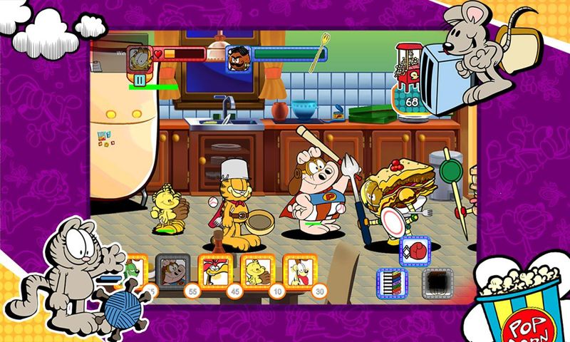 1、玩家通过虚拟按键控制加菲猫进行移动和攻击,操作简单易上手。