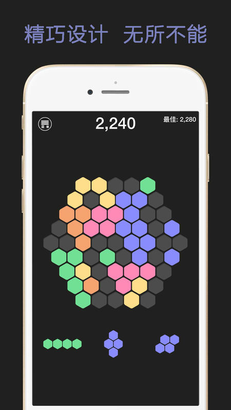 1、六边形设计:游戏采用独特的六边形方块,相较于传统的四边形方块,更具挑战性,也增加了游戏的趣味性。