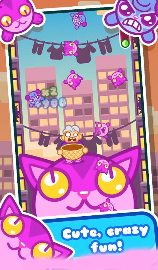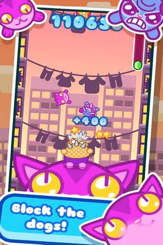 1、玩家通过触摸屏幕左右移动接猫板,接住从屏幕上方下落的小猫。
