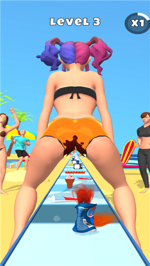 2、压扁障碍物:当角色移动到障碍物上方时,玩家需要迅速点击屏幕使角色一屁股坐下,将障碍物压扁并获得分数。