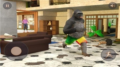 1、通过触摸屏幕控制大猩猩的行动,进行各种恶作剧行为,如偷窃、捉弄等。