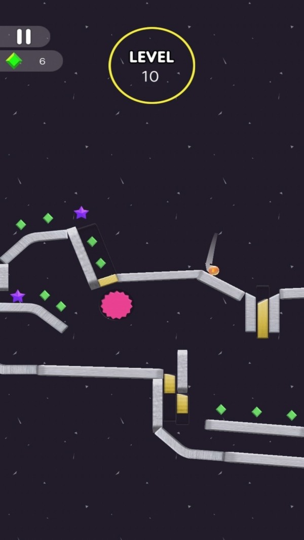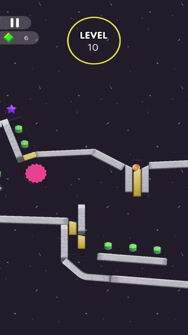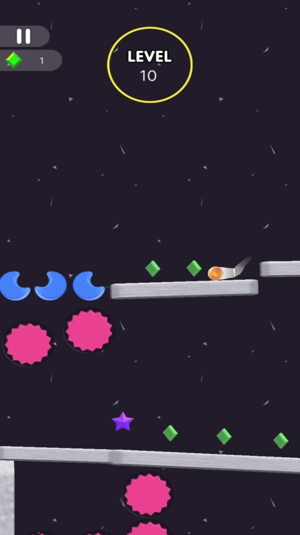 1、玩家通过操控小球跳跃、滑行、躲避障碍,尽可能地走得更远。