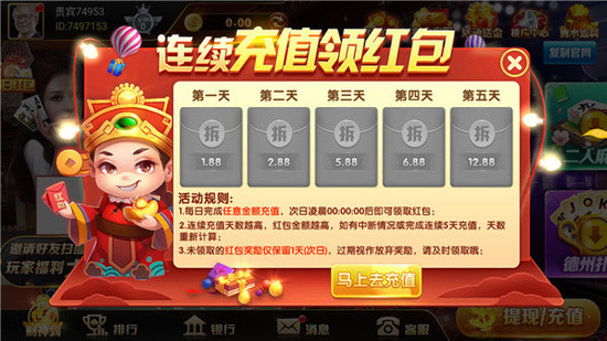 4. 全新玩法,多种经典棋牌:跑得快,斗地主,恶霸等等。