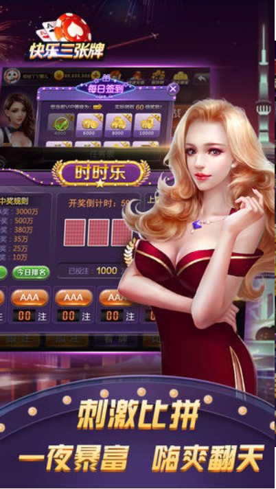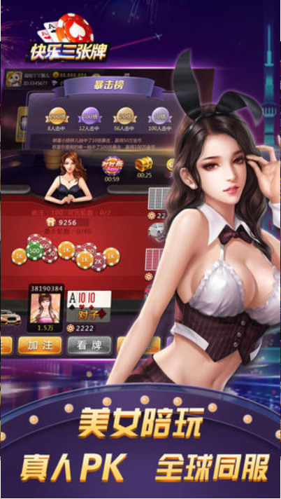 三张棋牌金花这是一款以棋牌为玩法所打造的游戏~游戏中有真实的拼三张游戏玩法,还有真实的玩家在线等你来竞技哦~游戏中的道具是非常丰富的,提高了玩家的趣味性,玩家可以在这里快乐的玩这款游戏~任何时间你都可以在这里畅玩哦~