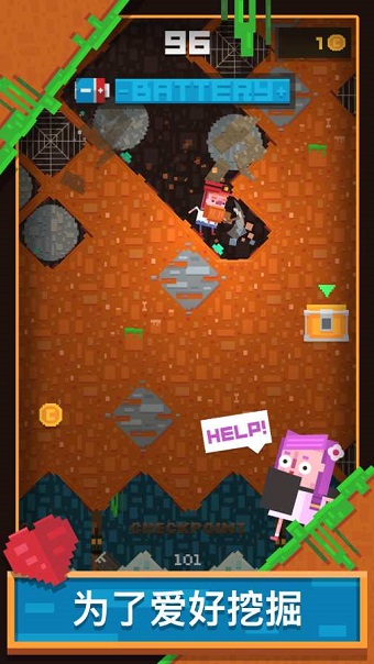 1、玩家通过滑动屏幕来控制挖地先生的移动方向,挖掘地下的宝藏。