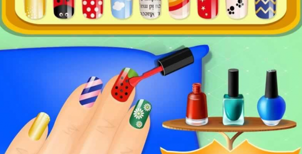3、使用游戏中的各种美甲工具和材料,进行细致入微的美甲设计和涂抹。
