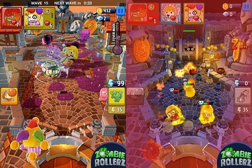 1、玩家通过发射弹珠来击打屏幕上不断涌现的僵尸,每个僵尸被击中后都会掉落分数。